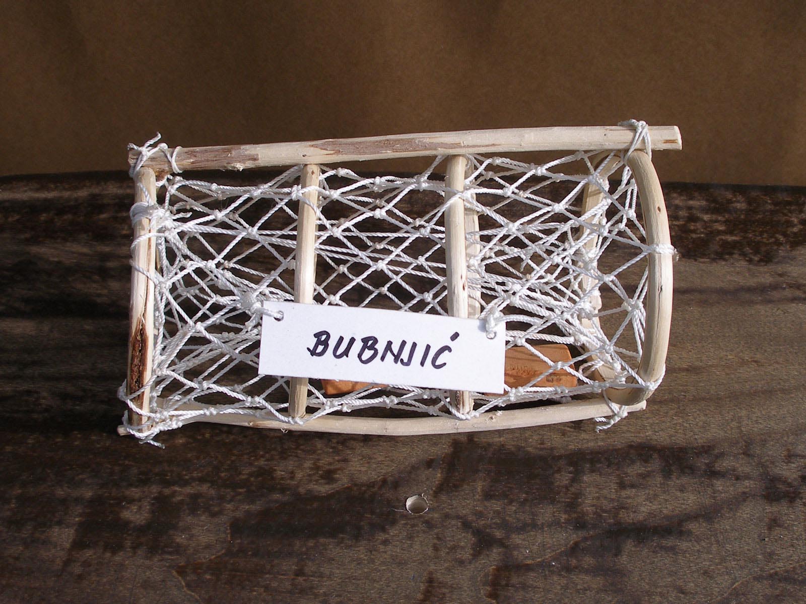 BUBNJIĆ, dužine 1 m na više i promjera obruča 50 cm na više prema potrebi. Koristi se za lov svih vrsta ribe većinom po barama i kanalima cijele godine.