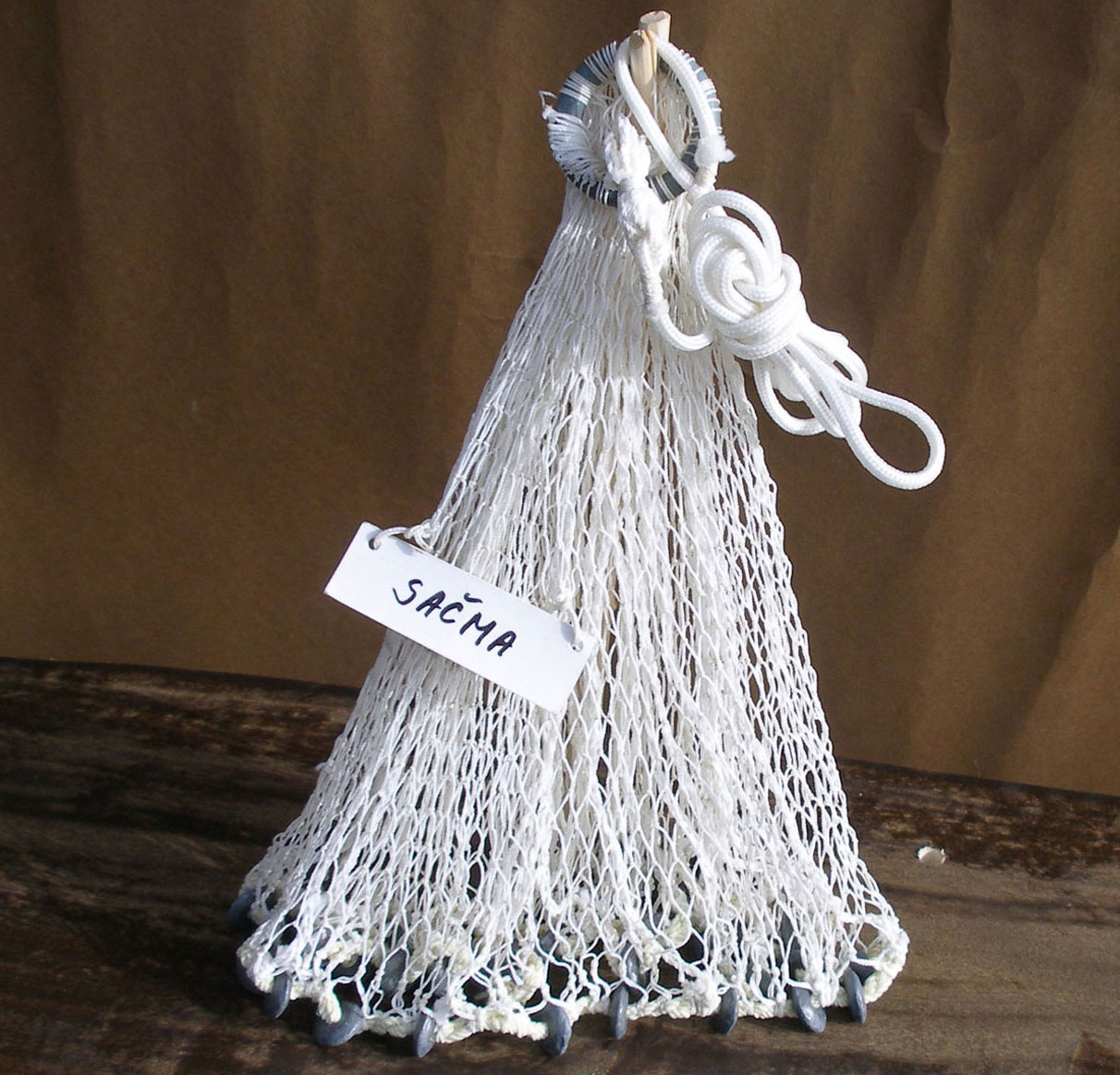 SAČMA, visine 1–1,80 cm (oko 1–4 cm, štrik 10 m ), promjer kruga kad se baci i raširi od 2 – 3,5 m. Koristi se cijele godine za lov svih vrsta ribe.
