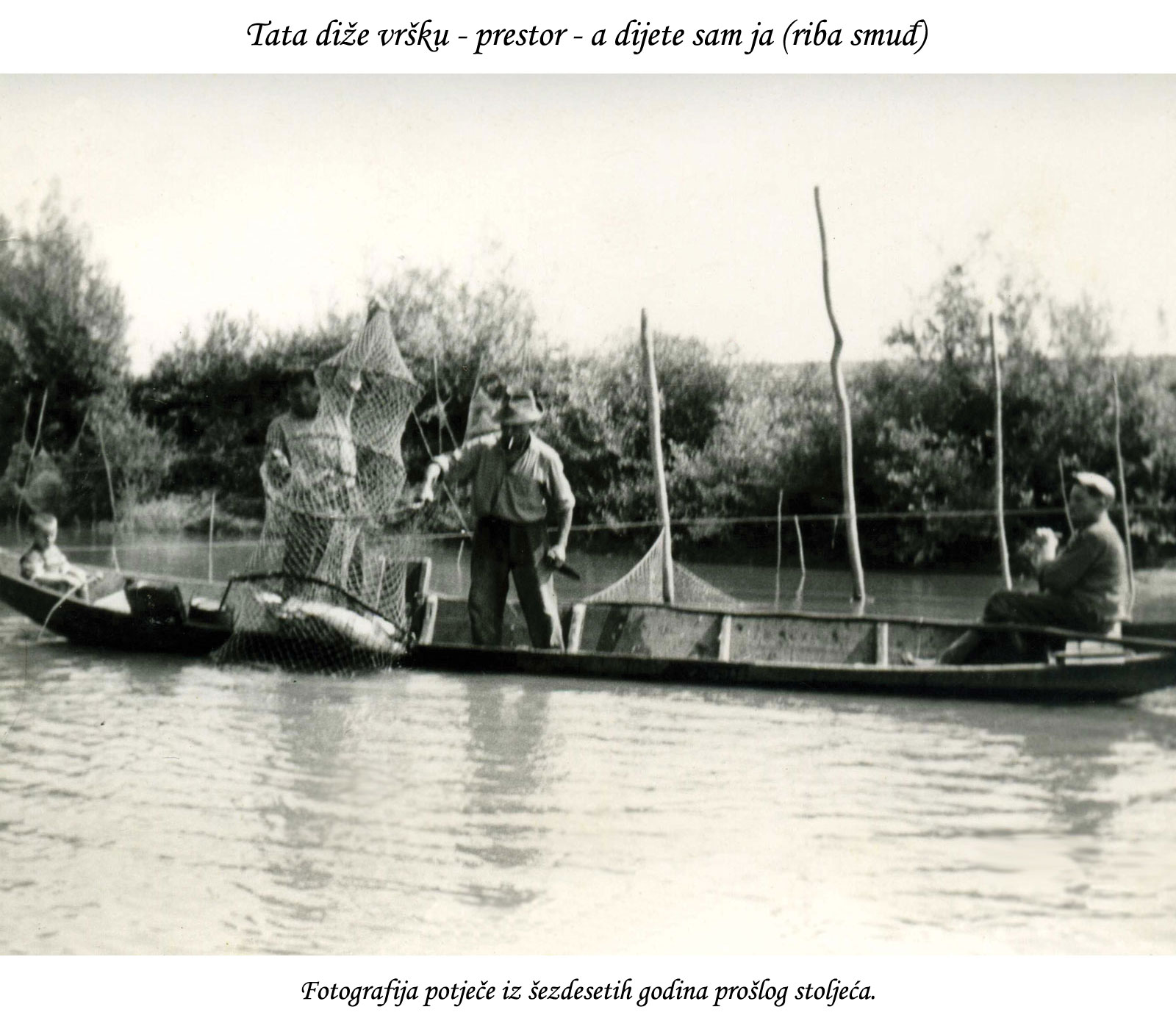 Često sam s ocem, sada pokojnim Ivanom Vojković, išao na Savu. Moj otac je godinama lovio ribarskim alatima koji su danas prerasli u tradicijske ribarske alate na „prestoru Trebež“ tj. na ušću Trebeža u rijeku Savu. Do ušća Trebeža u rijeku Savu moralo se veslati uzvodno četiri kilometra ( oko jedan sat vremena ), gdje se prolazilo lađarima poznatog čoška „Vojkovićeva vrba“. Upravo na tom području samog ušća, na kopnu je bila „ribarska koliba“ u kojoj su se ribari sastajali i boravili. Bili su to ljudi starosti pedeset, šezdeset godina, Đuro Bogdanović, Mato Brtan, Mijo Holjevac i dr...